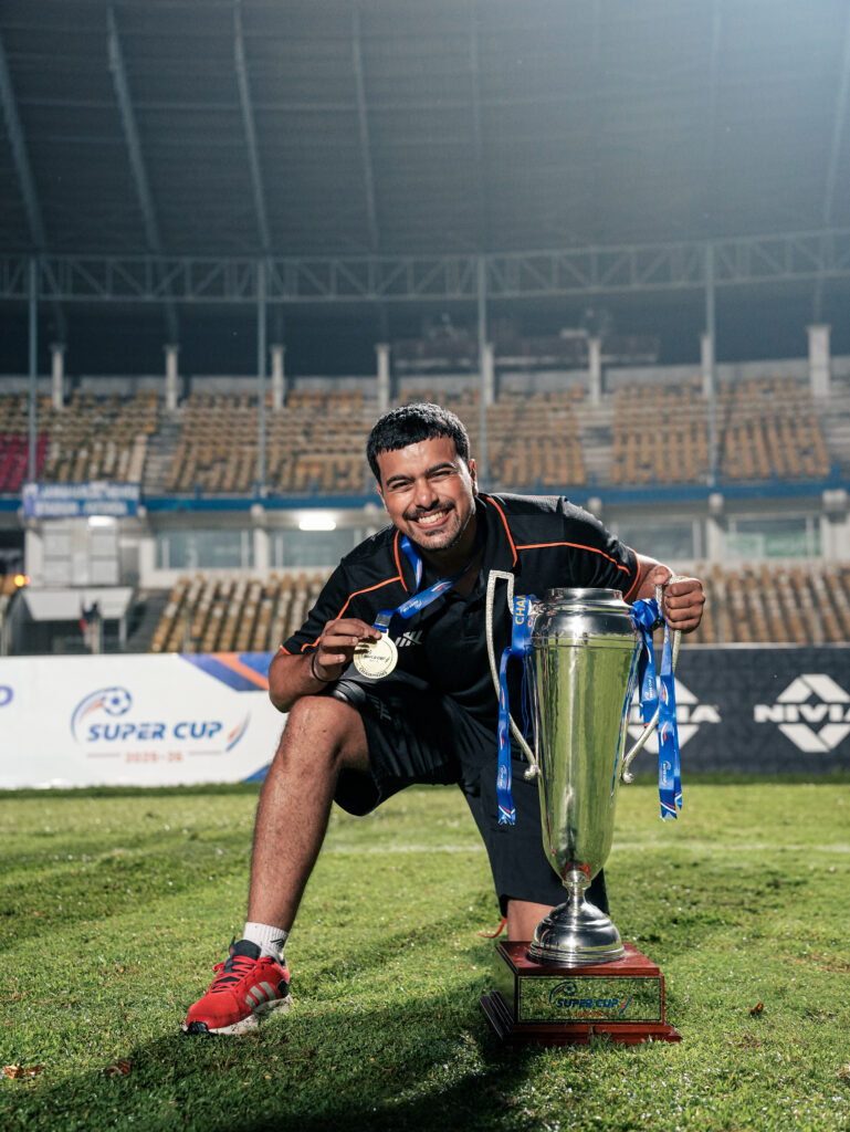 Aryan Jagdish Bhobe’s journey with FC Goa is a story rooted in passion, persistence, and timing. Like countless supporters, he began as a fan during his early teens, following the club since 2014. What sets his story apart is the leap from the stands to the sidelines. Straight out of college, with no advertised openings and a season still months away, Aryan took a chance by directly reaching out to the club through an email found on its website. That single step led to a marketing internship, and within six months, a permanent role. Today, at just 23, he serves as FC Goa’s Content Producer and the official Team Photographer across competitions.
