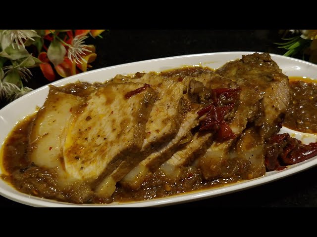 Place the pork and marinade into a baking tray. Cover with foil and roast at 160°C for 1.5–2 hours, turning it occasionally. As it cooks, the meat turns tender, and the gravy thickens beautifully.